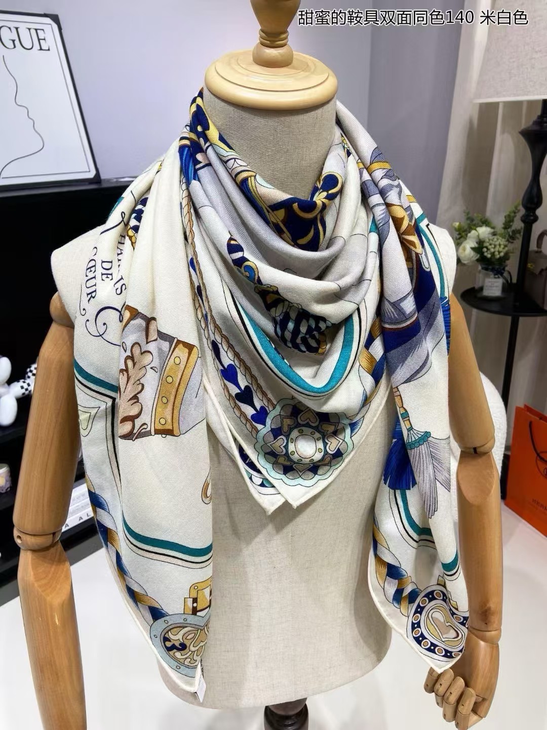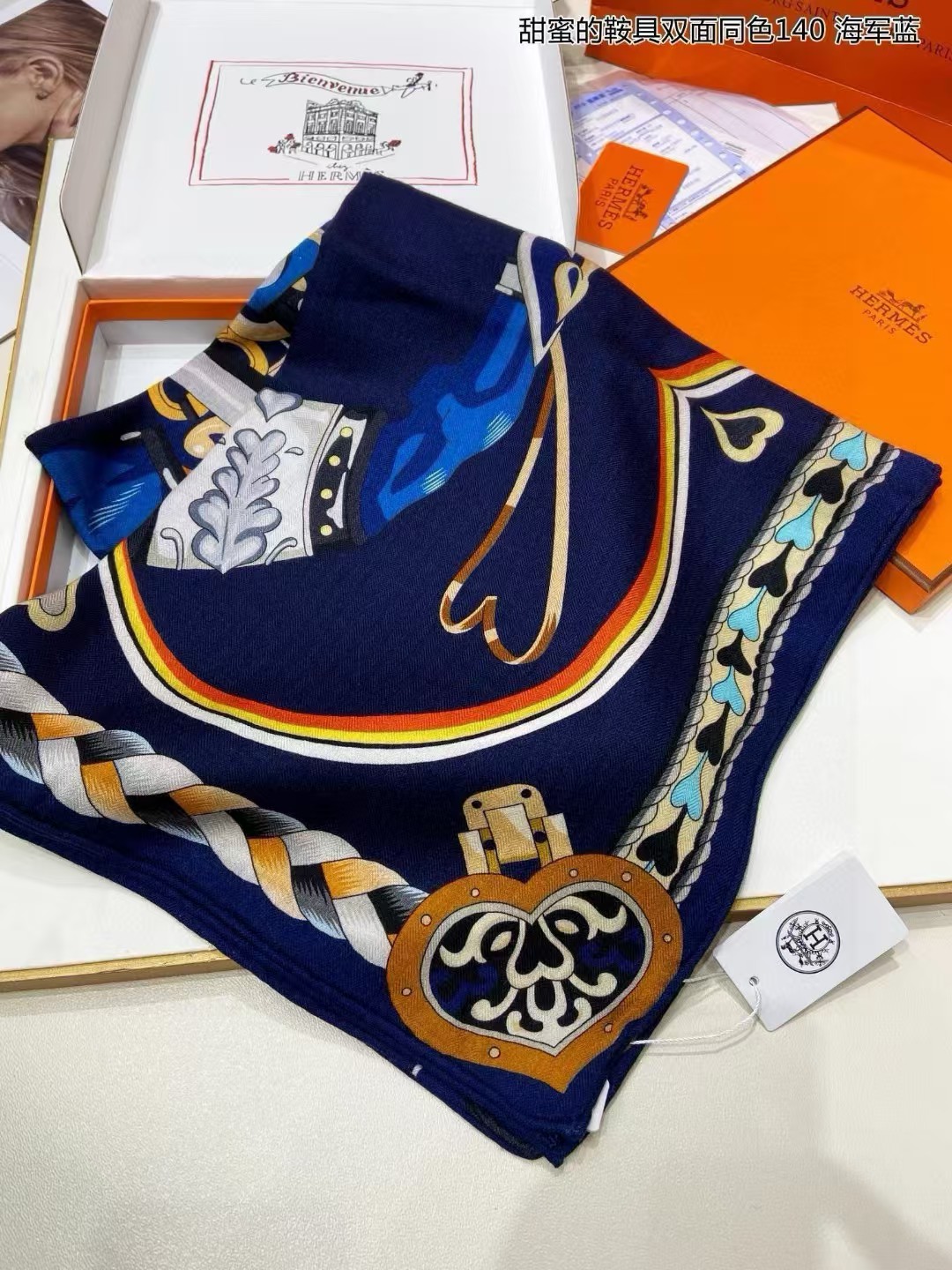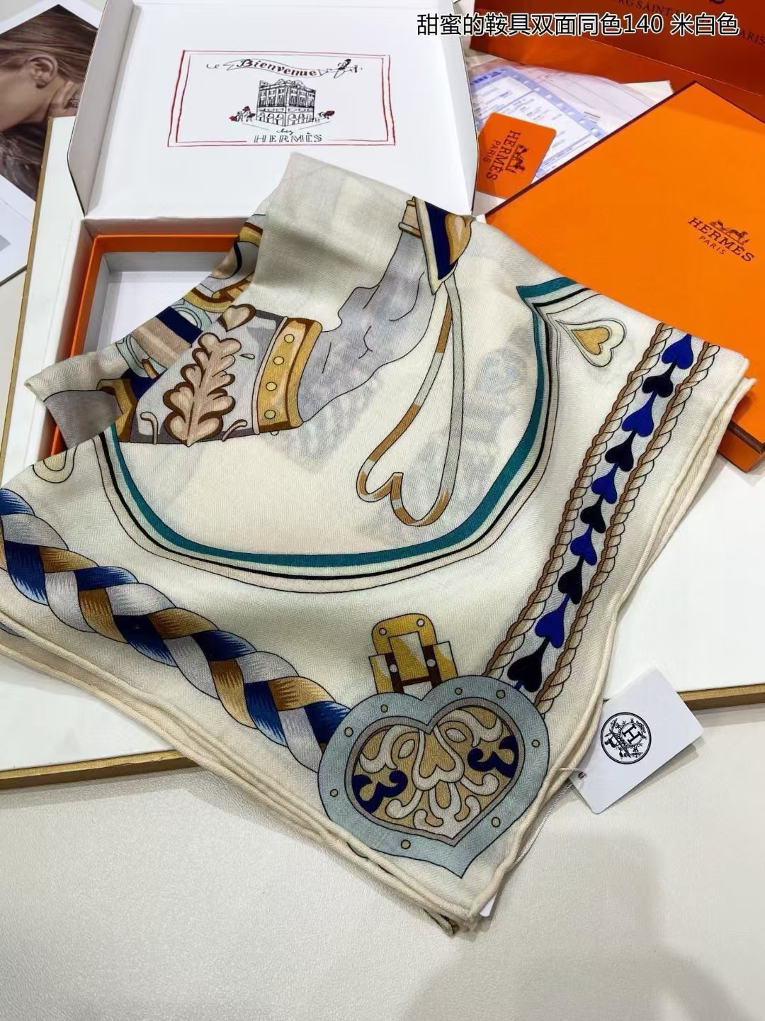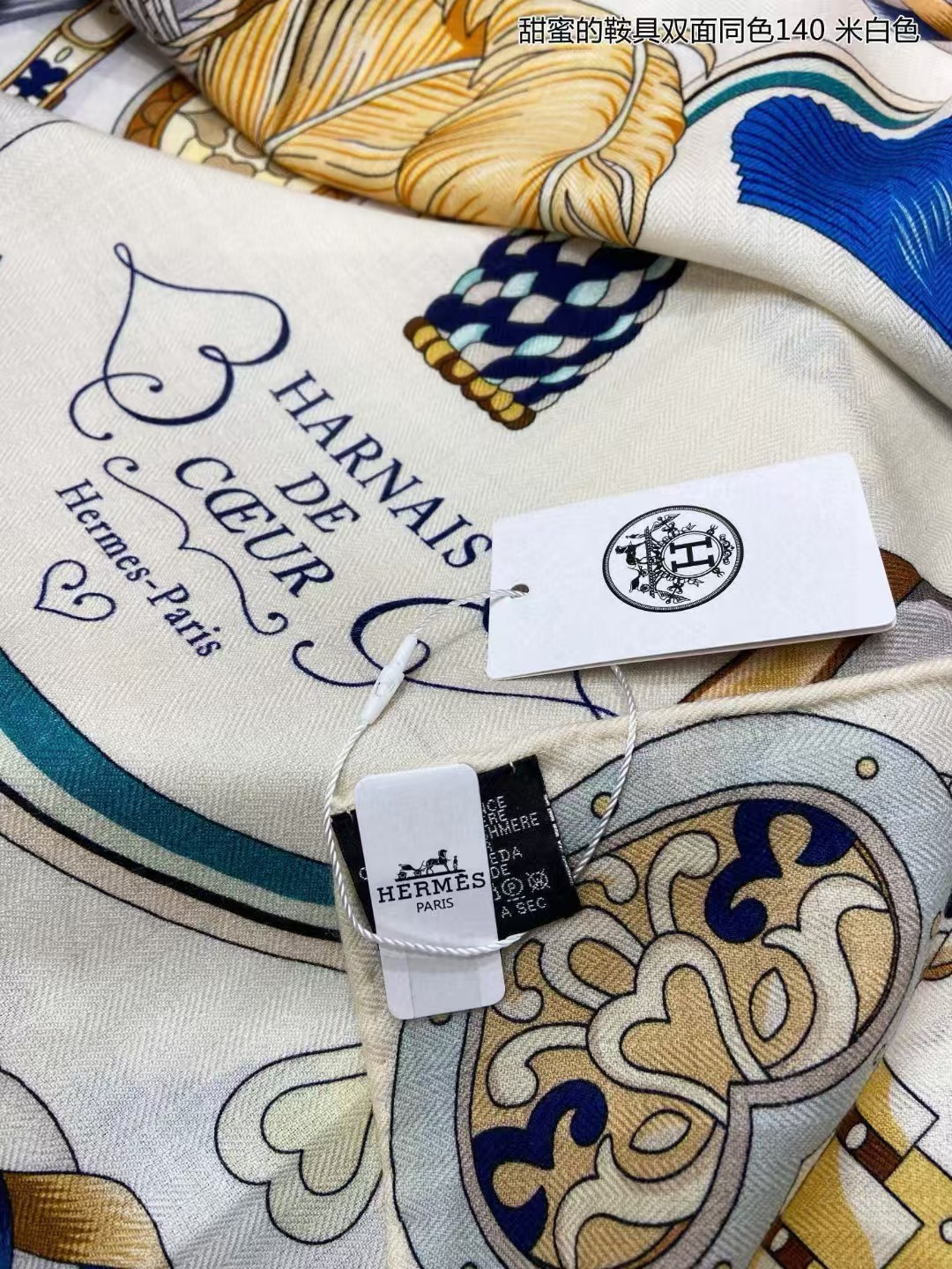 HERMES 爱马仕 马鞍图案印花 双面同色羊绒方巾
