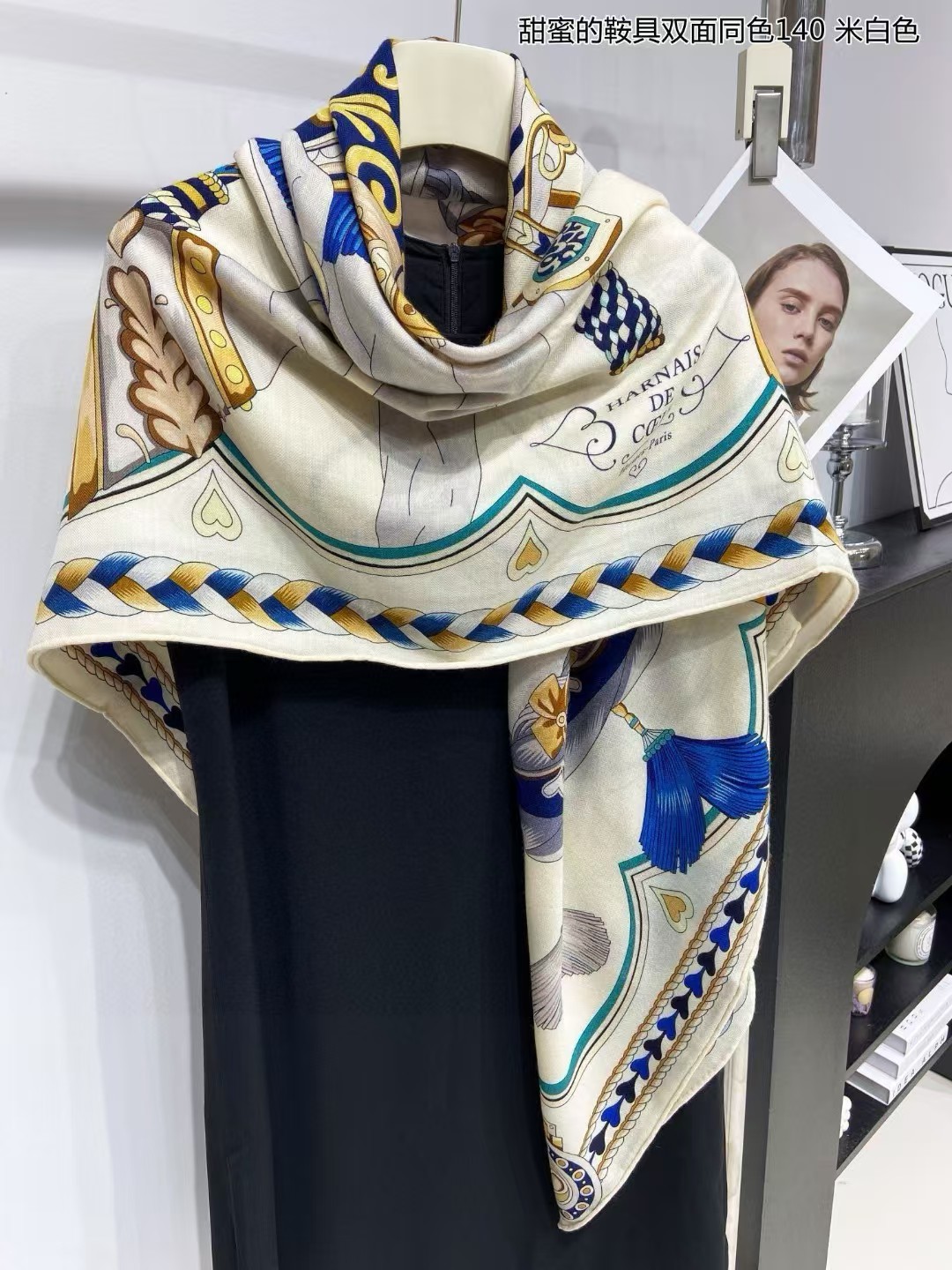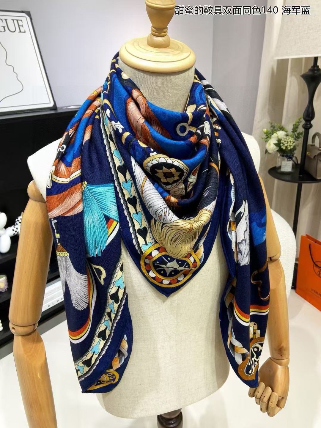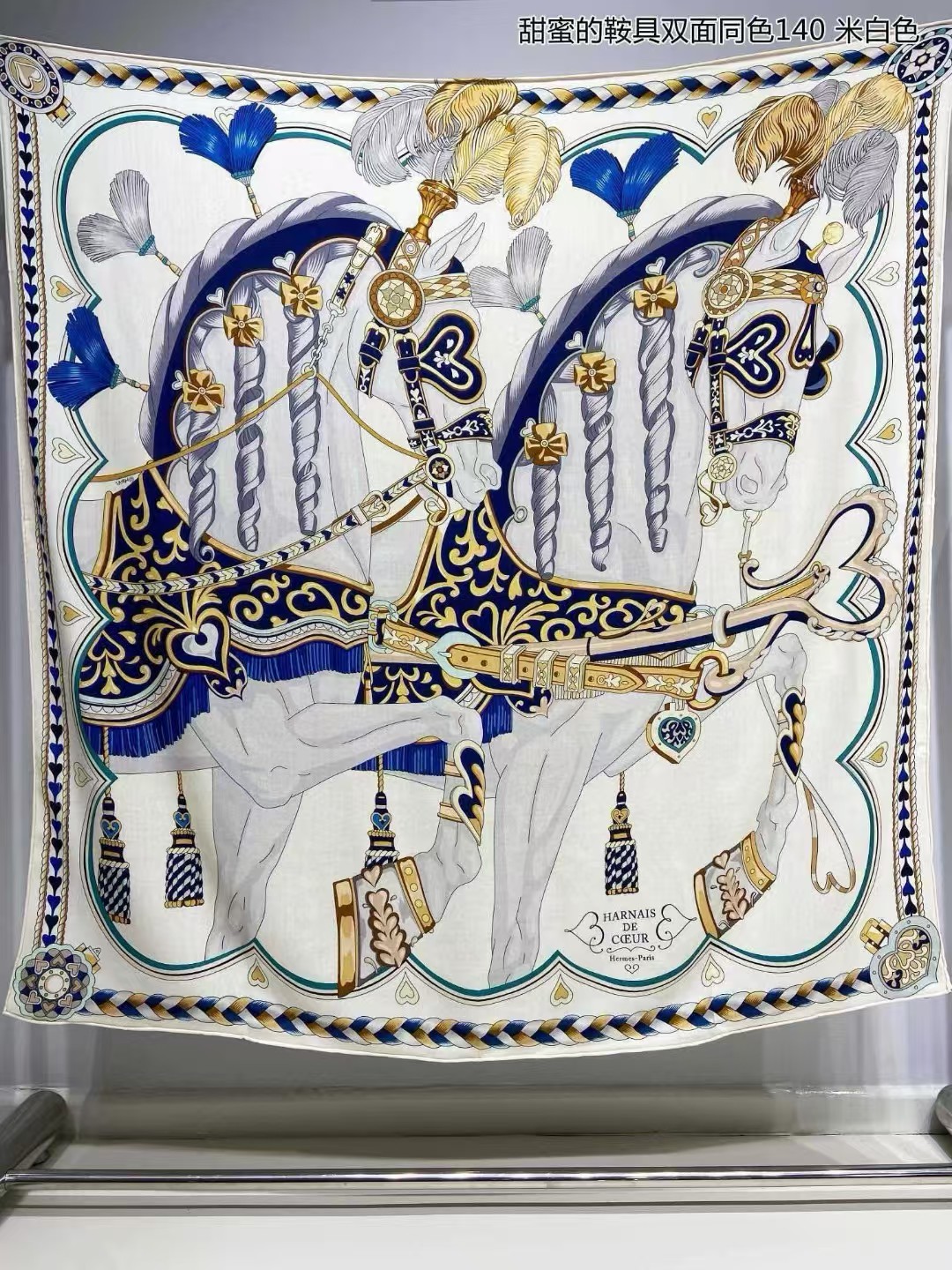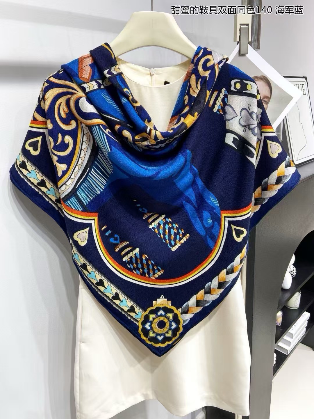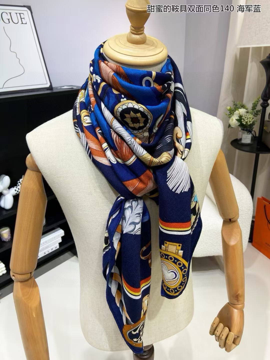 HERMES 爱马仕 马鞍图案印花 双面同色羊绒方巾