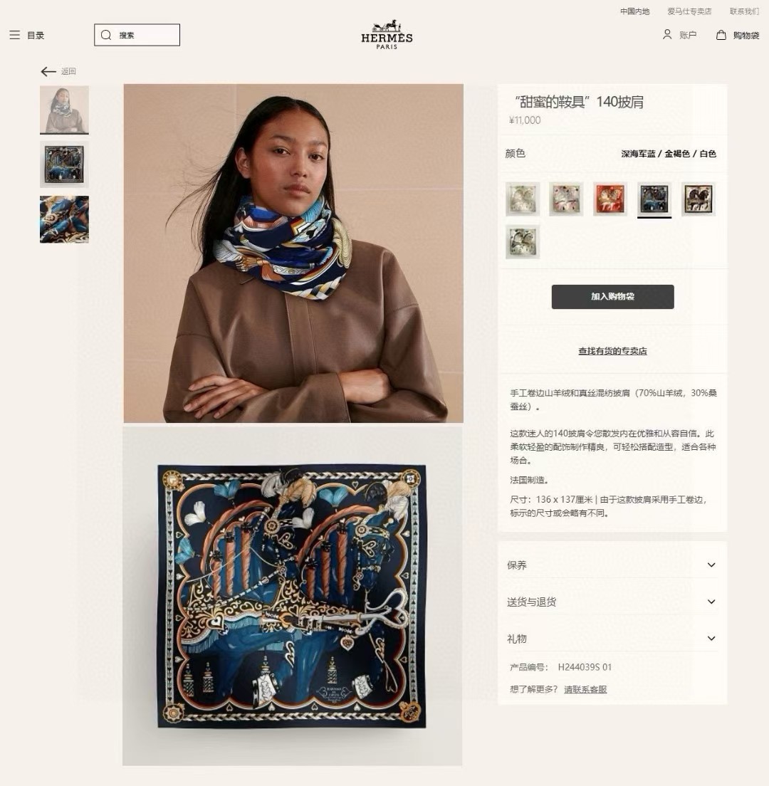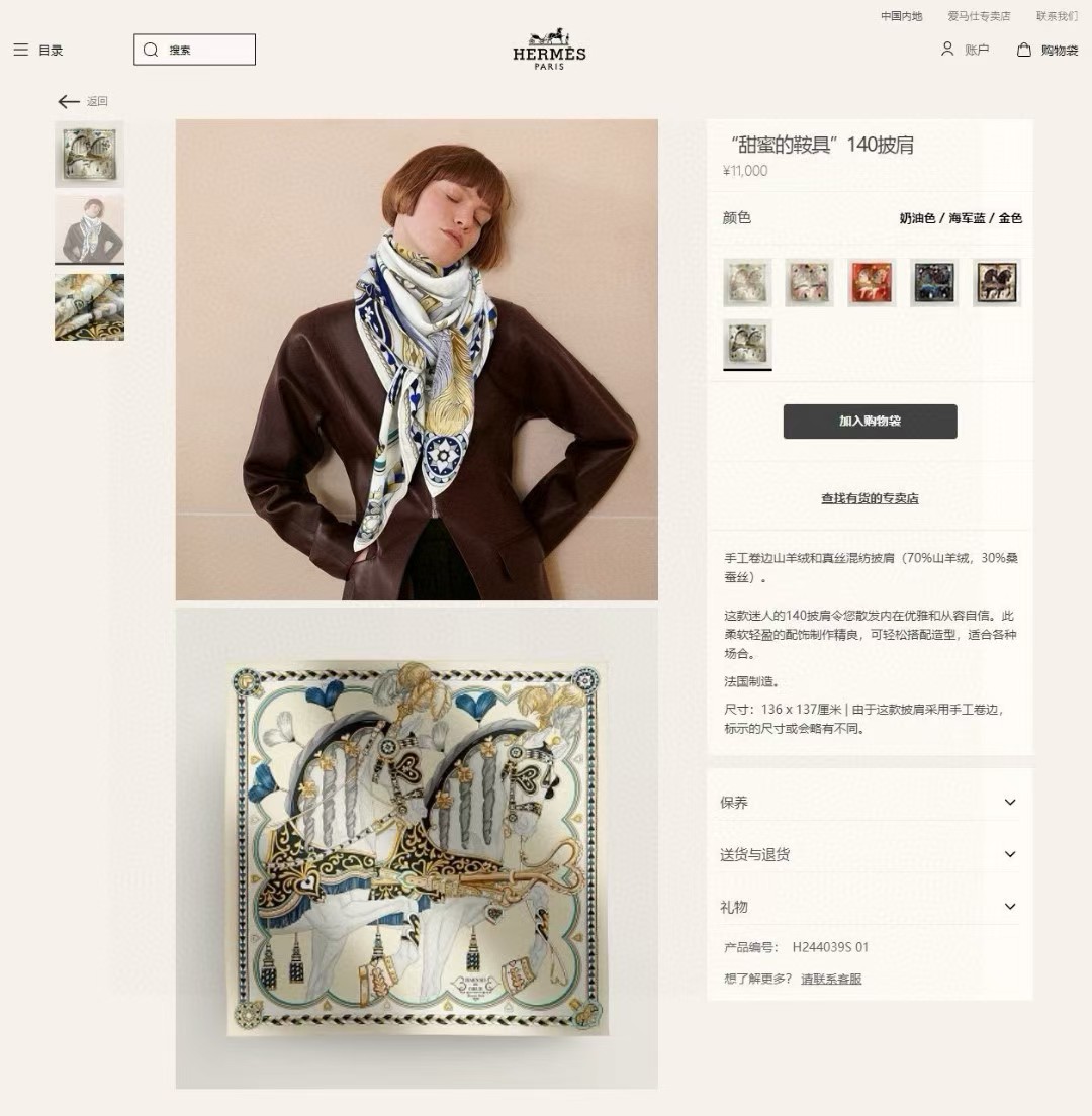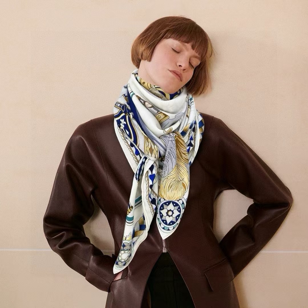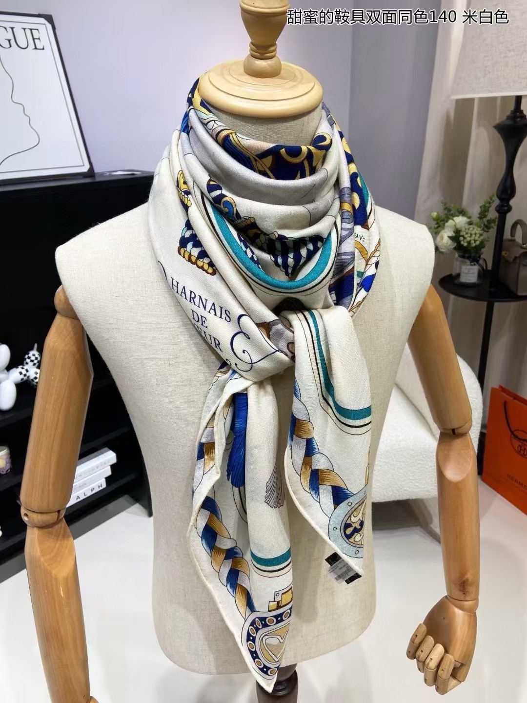 HERMES 爱马仕 马鞍图案印花 双面同色羊绒方巾