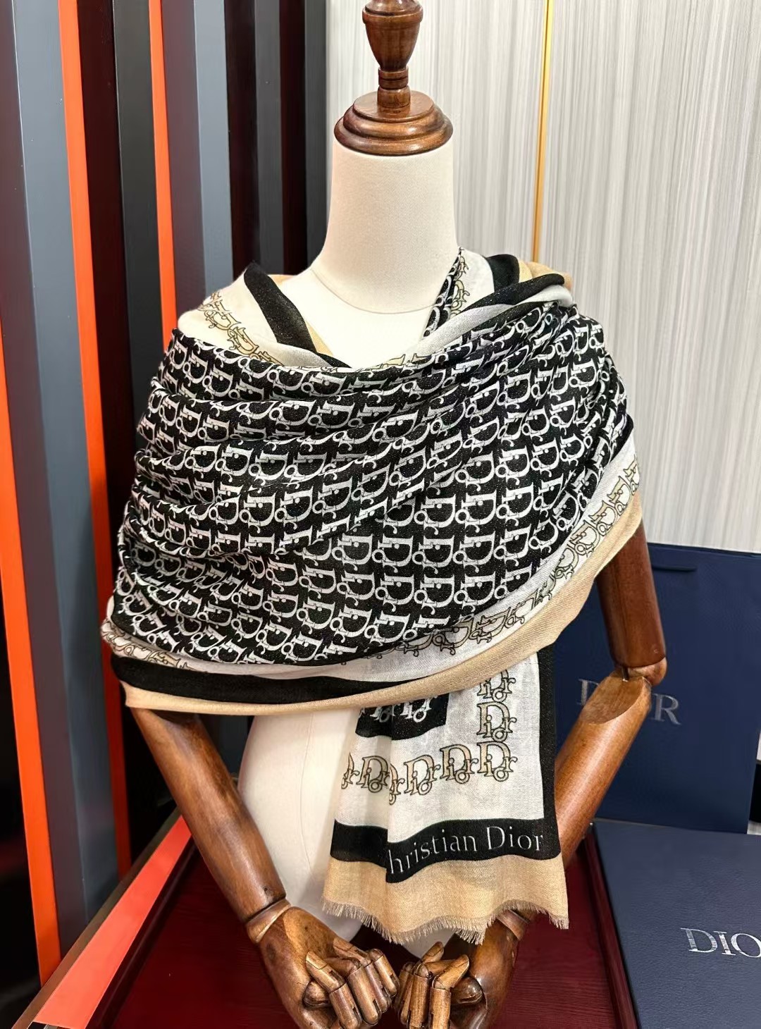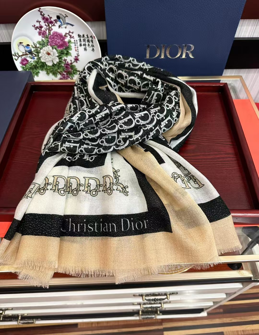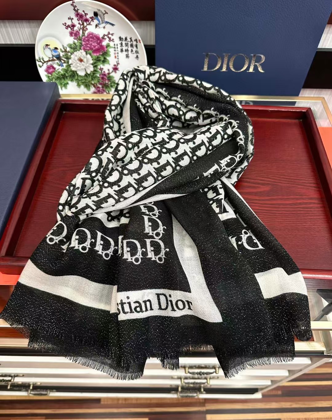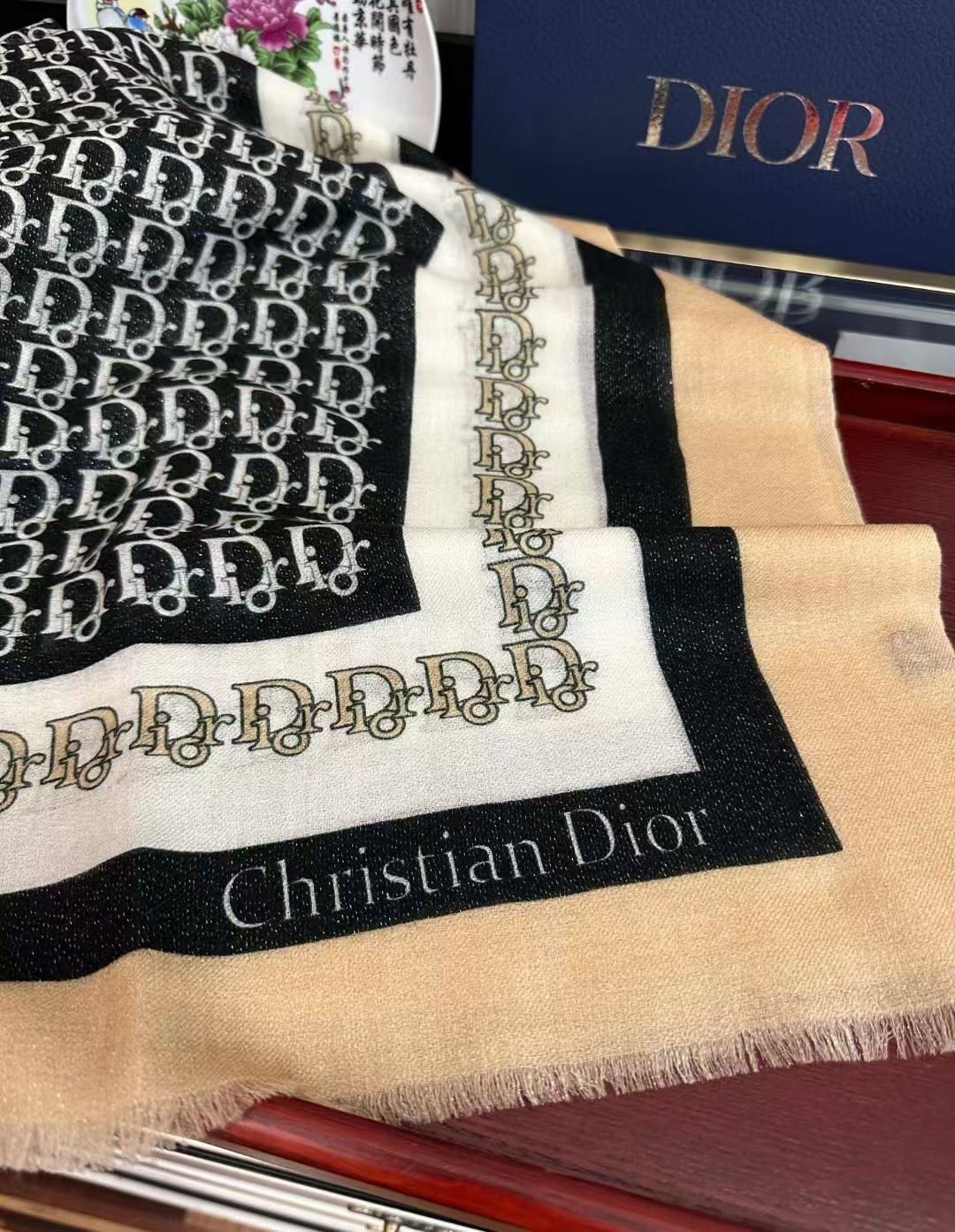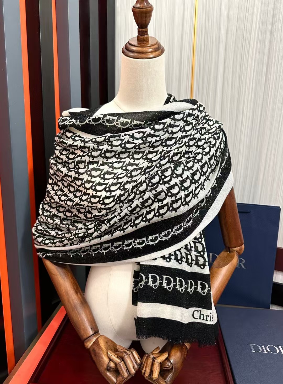 DIOR 迪奥 羊绒 字母银丝戒指绒长巾