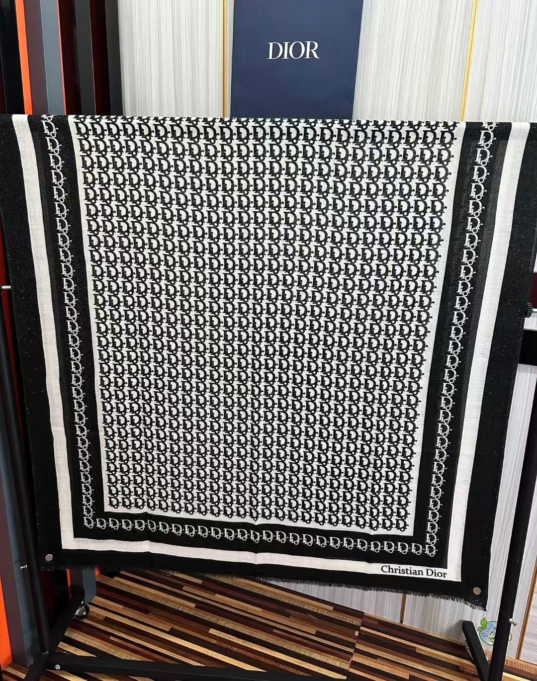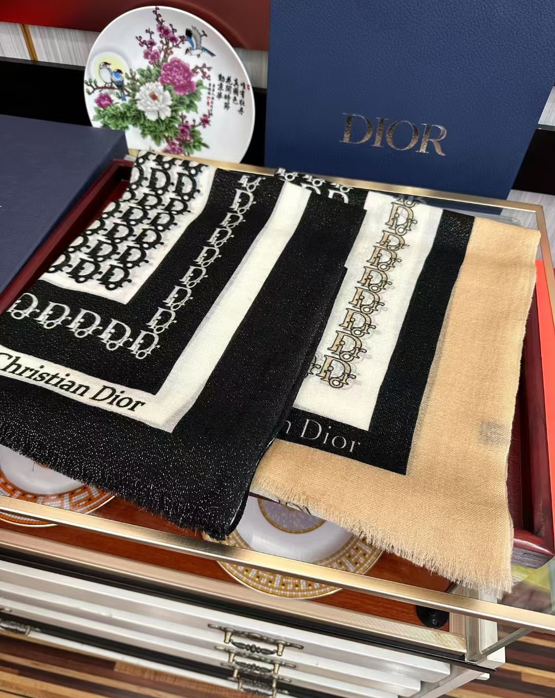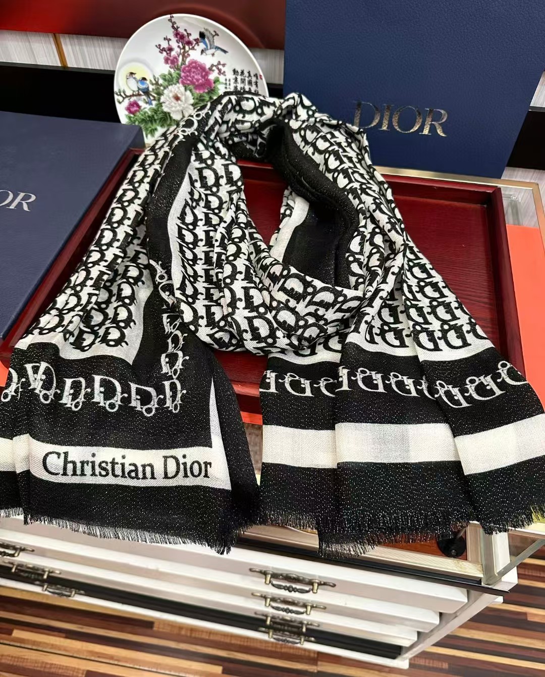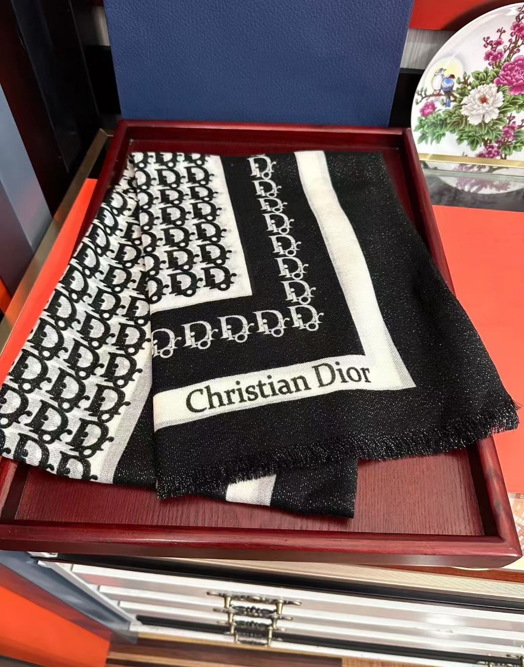 DIOR 迪奥 羊绒 字母银丝戒指绒长巾