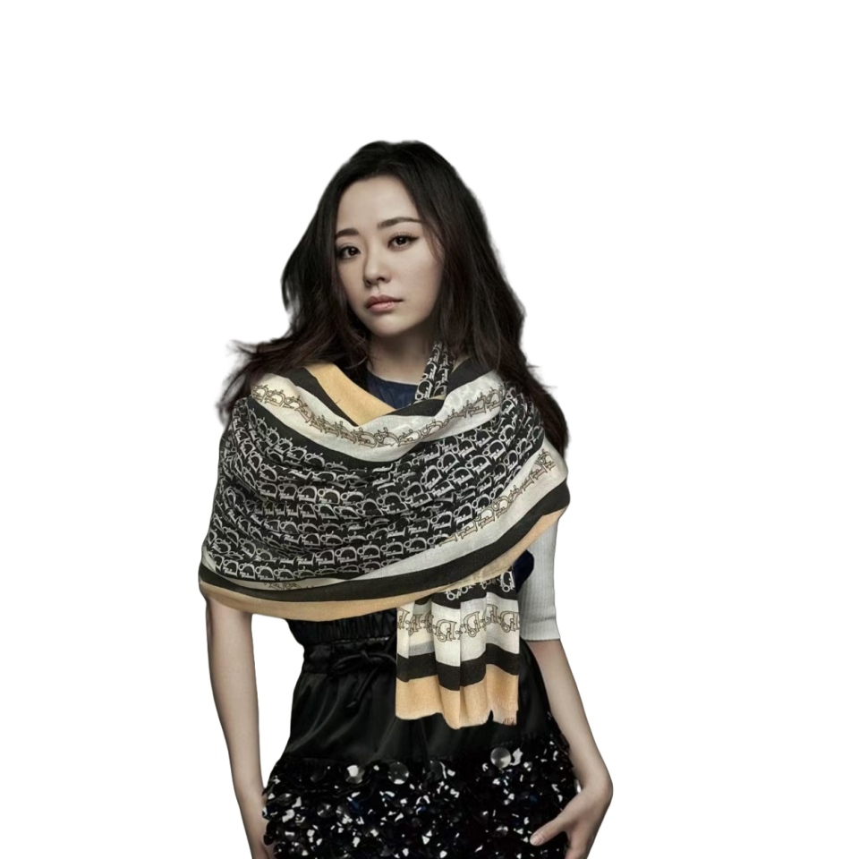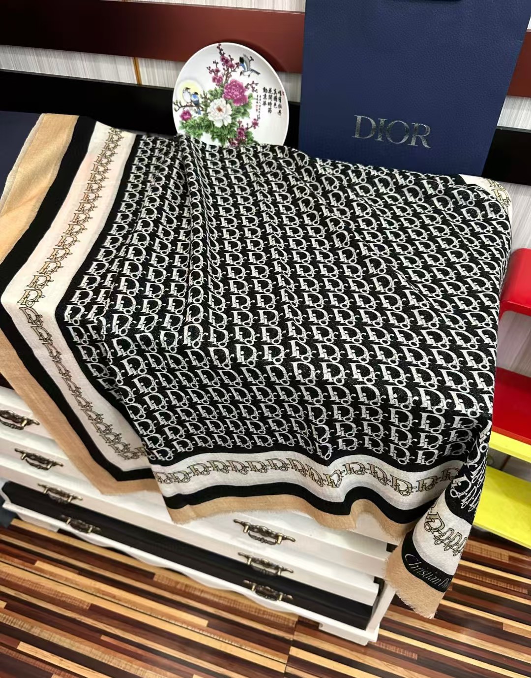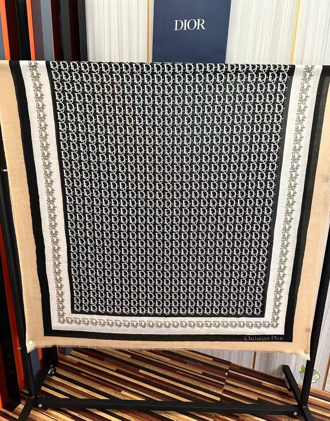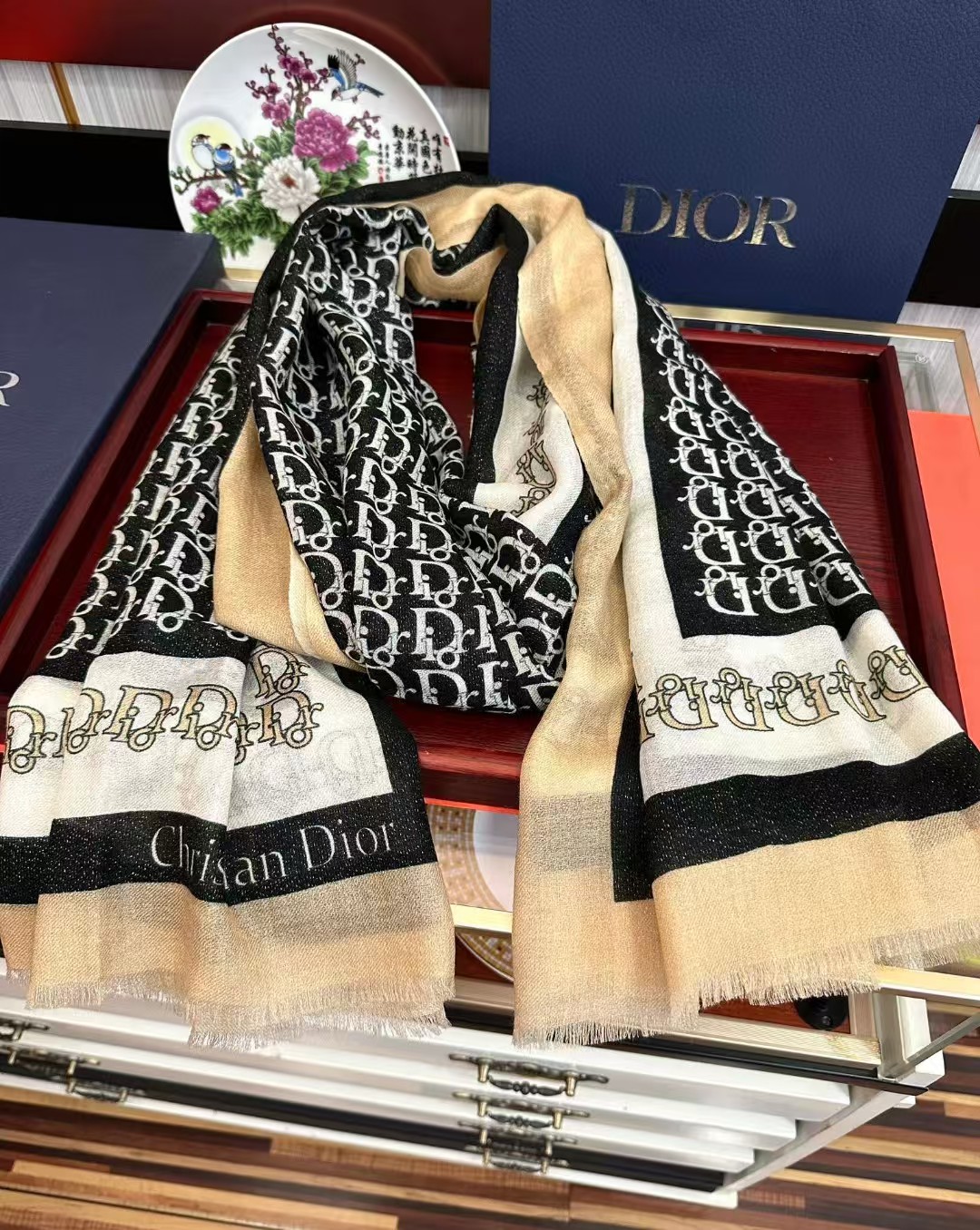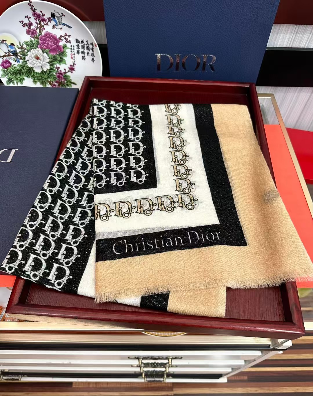 DIOR 迪奥 羊绒 字母银丝戒指绒长巾