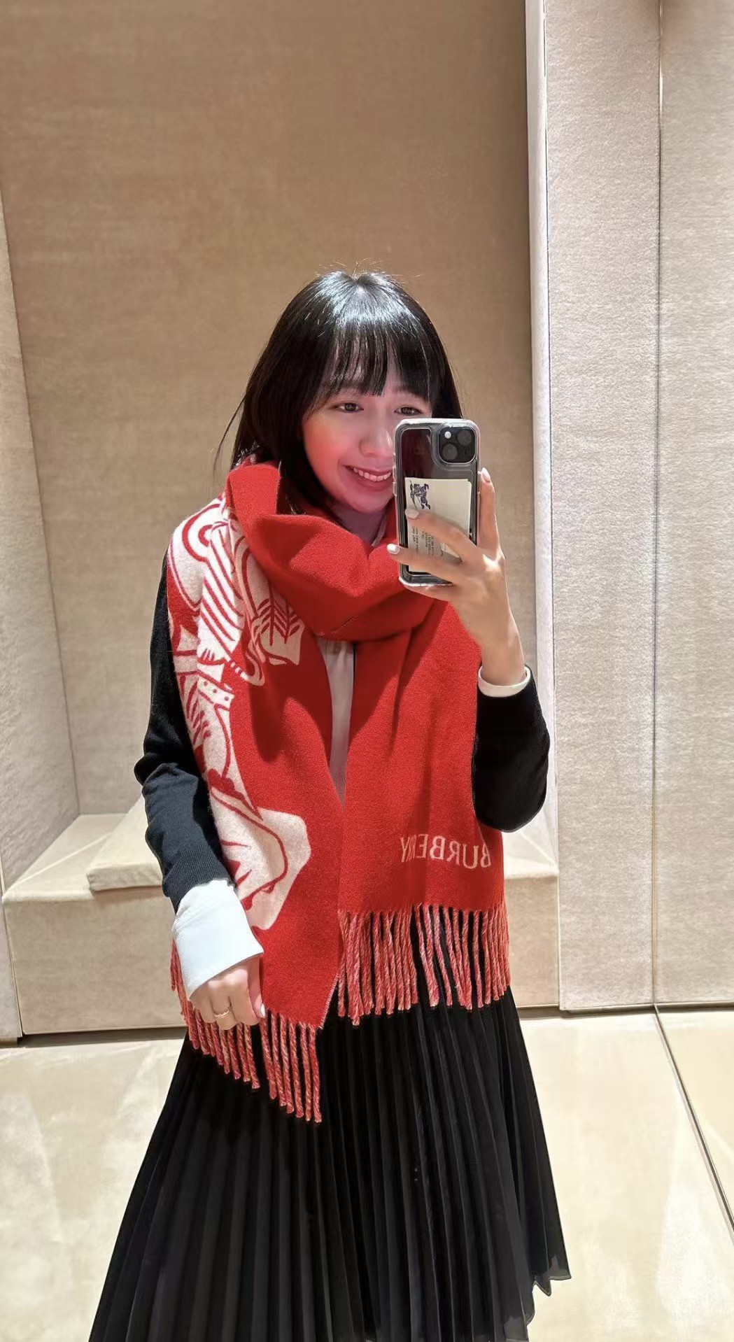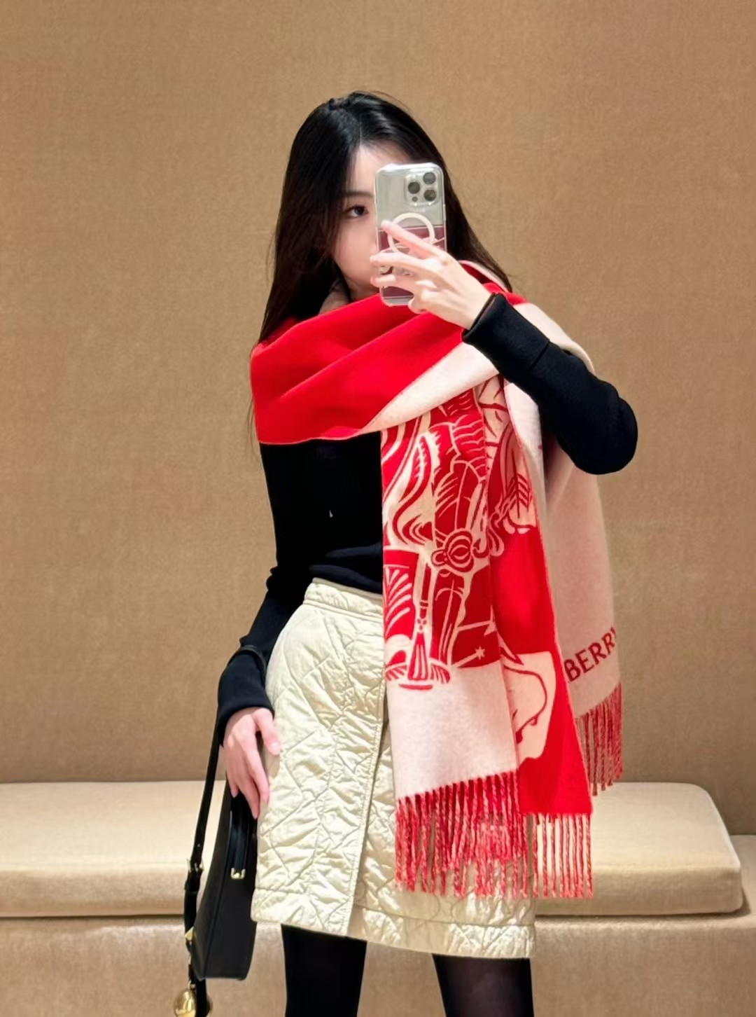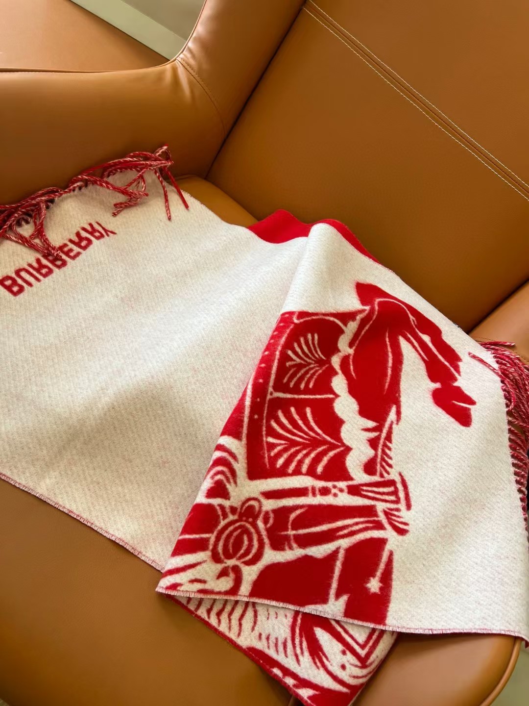 【介绍】 新年限定款‼️ 双面两用羊绒围巾,可披可围,大副马术骑士徽标提花,看一眼就爱上‼️大红:喜庆、吉祥、热闹,期盼未来日子能够过的“红红火火”。本命色衣柜里必然需要的一件红色,心心念念,不会让你失望!纯羊绒,贴肤穿非常舒服!