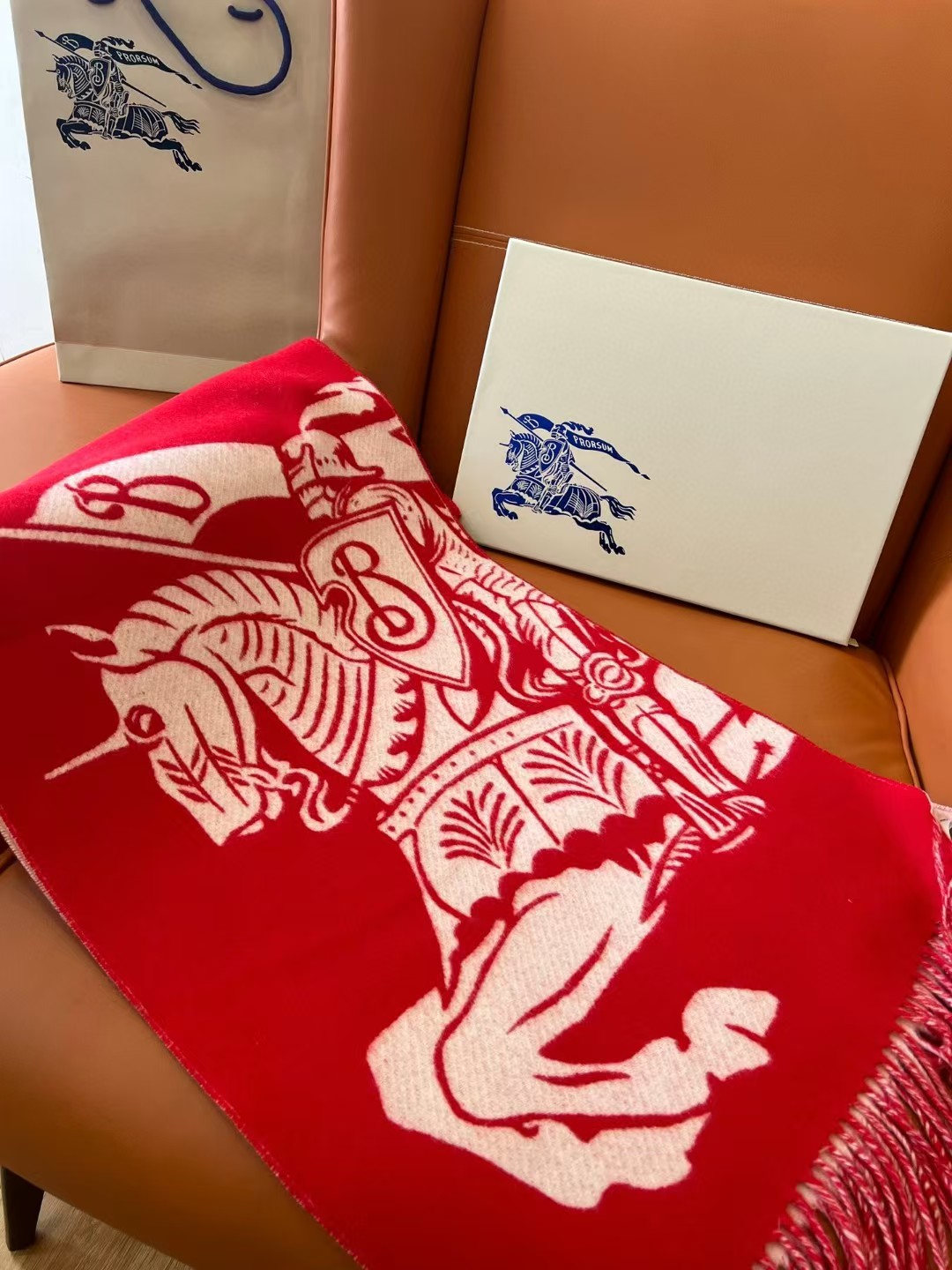 BURBERRY博柏利 限定款 马术骑士图案 双面两用羊绒围巾