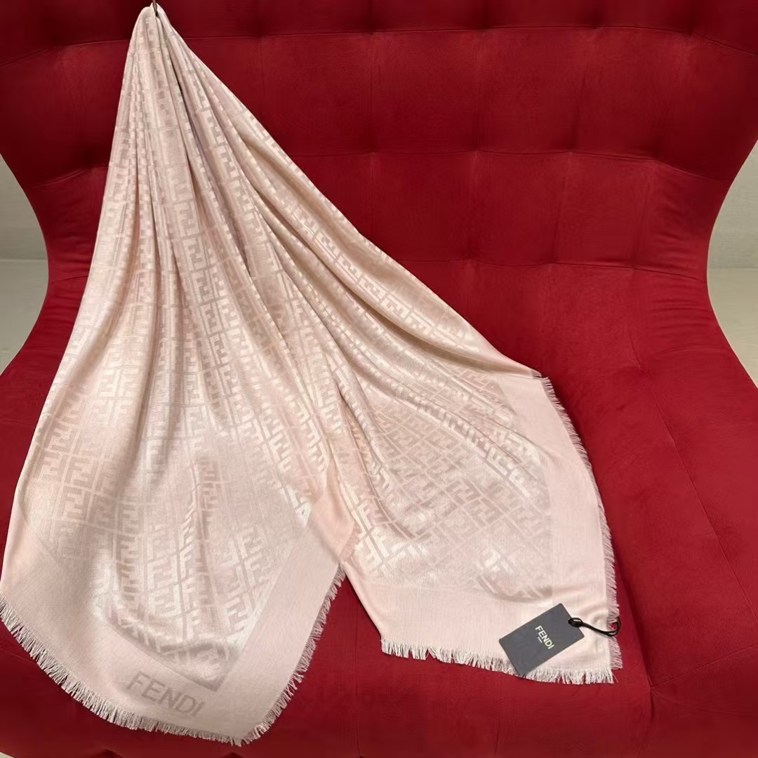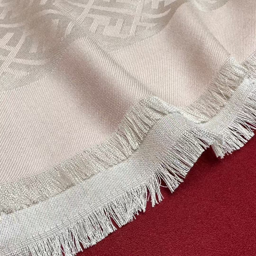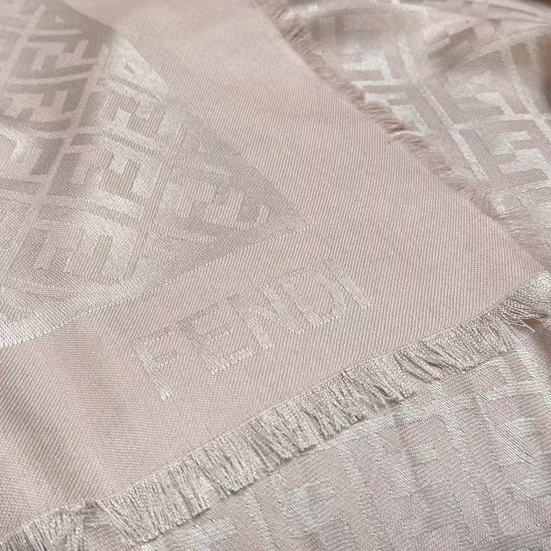 【介绍】 FENDI新【 FF字母提花丝巾披肩】 满Logo设计提花, 带点珠光亮泽 戴上显得整个人温柔又有气质~手感很舒服 厚度适中 一年四季都可以用 最实用的,无论当披肩还是当围脖都很合适!