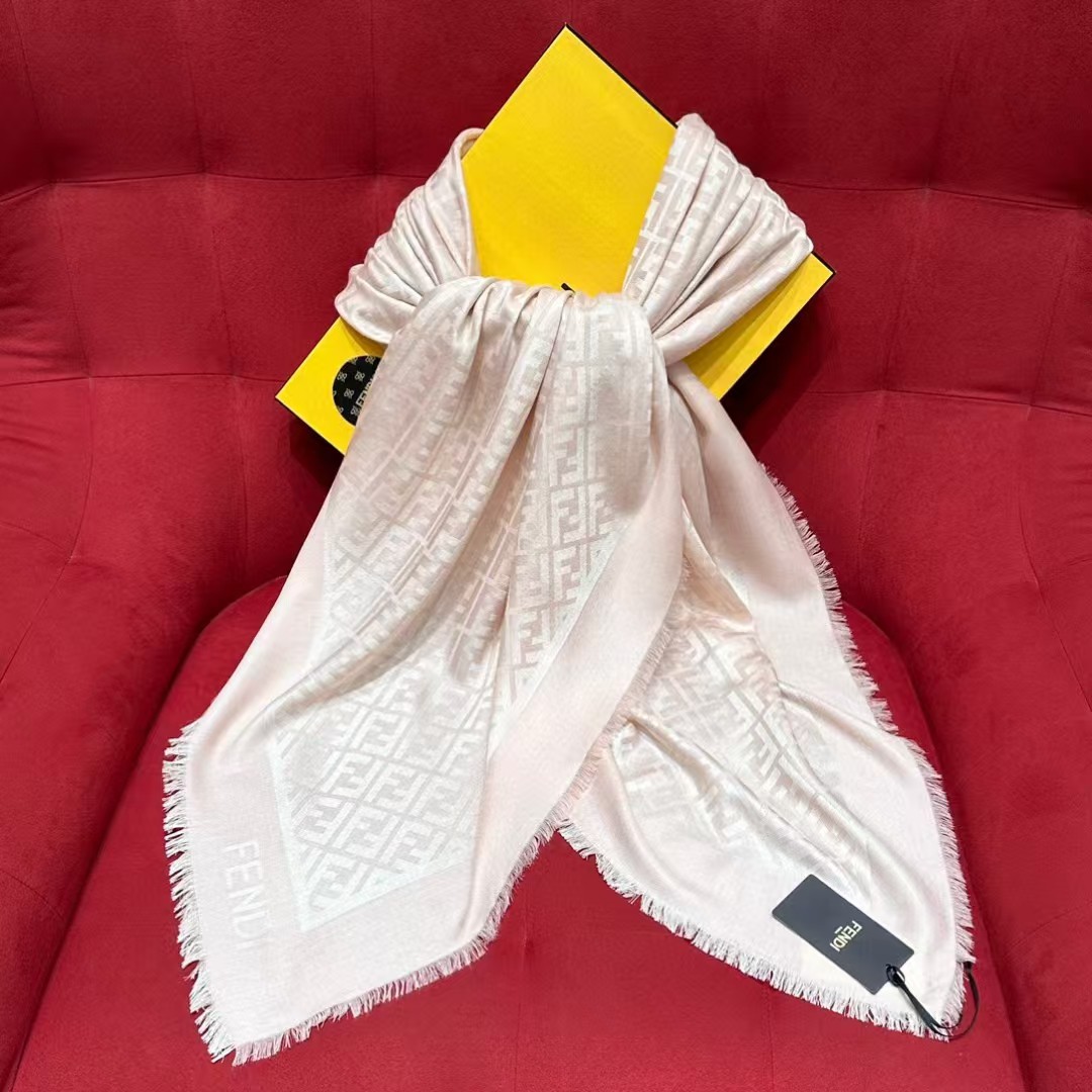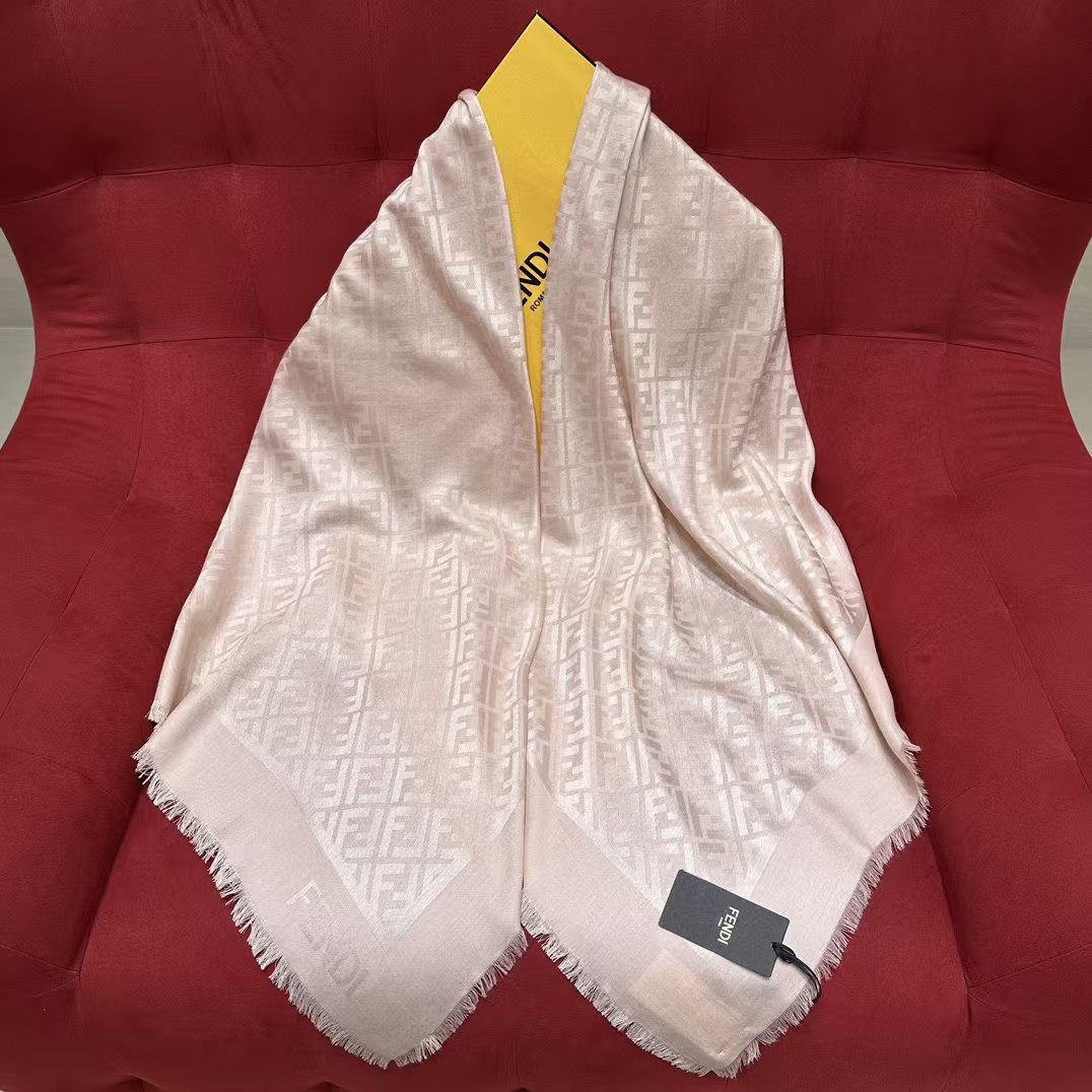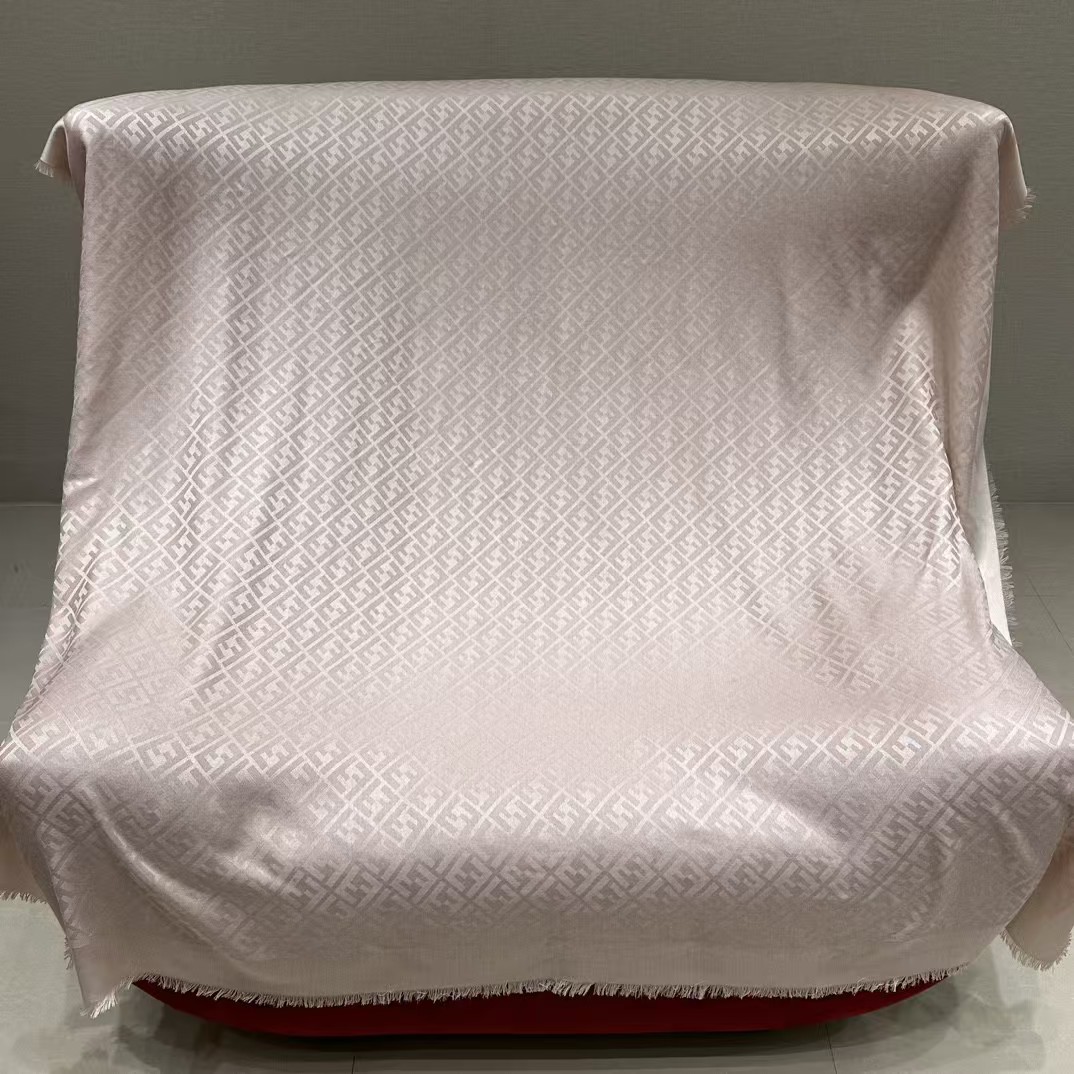 【介绍】 FENDI新【 FF字母提花丝巾披肩】 满Logo设计提花, 带点珠光亮泽 戴上显得整个人温柔又有气质~手感很舒服 厚度适中 一年四季都可以用 最实用的,无论当披肩还是当围脖都很合适!