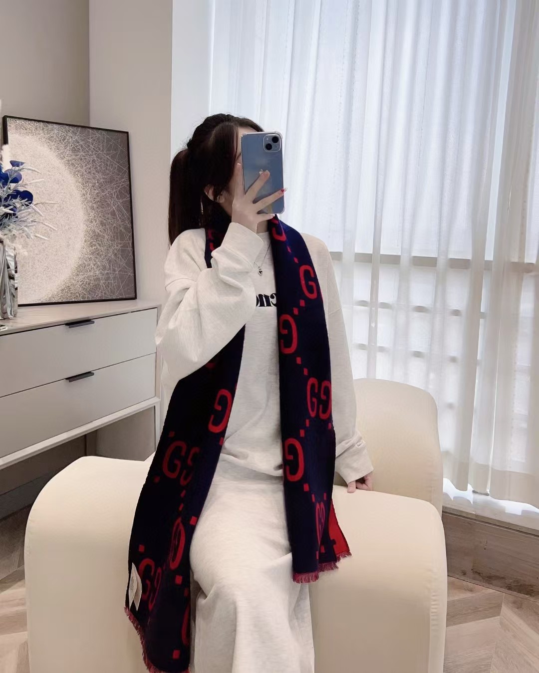 Gucci 古驰 羊毛真丝 绒线围巾 男女同款