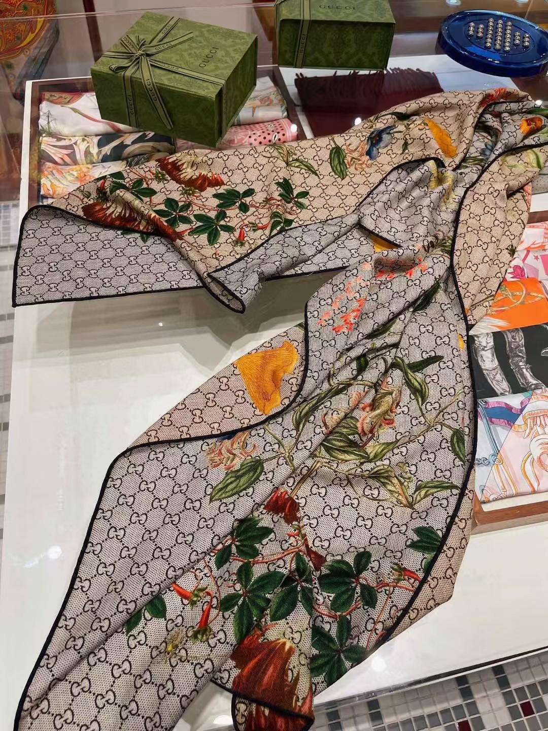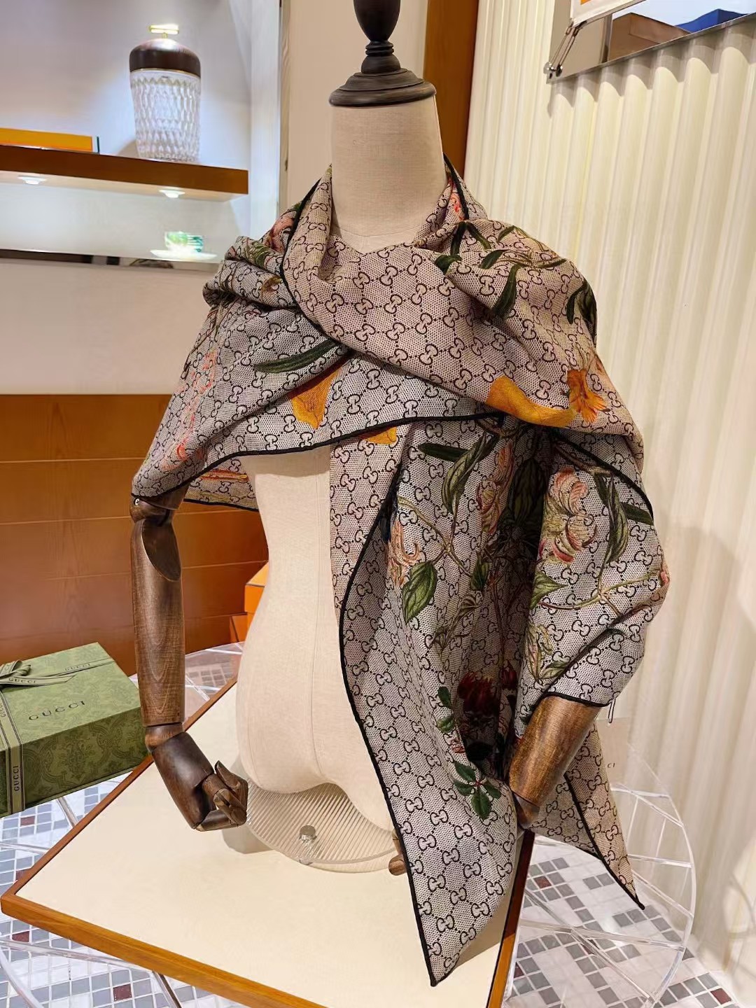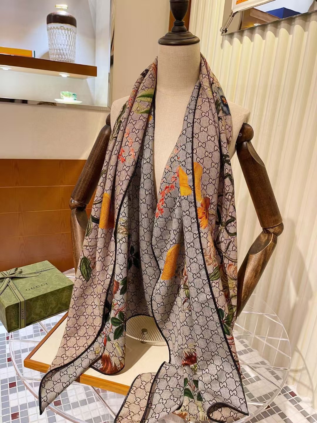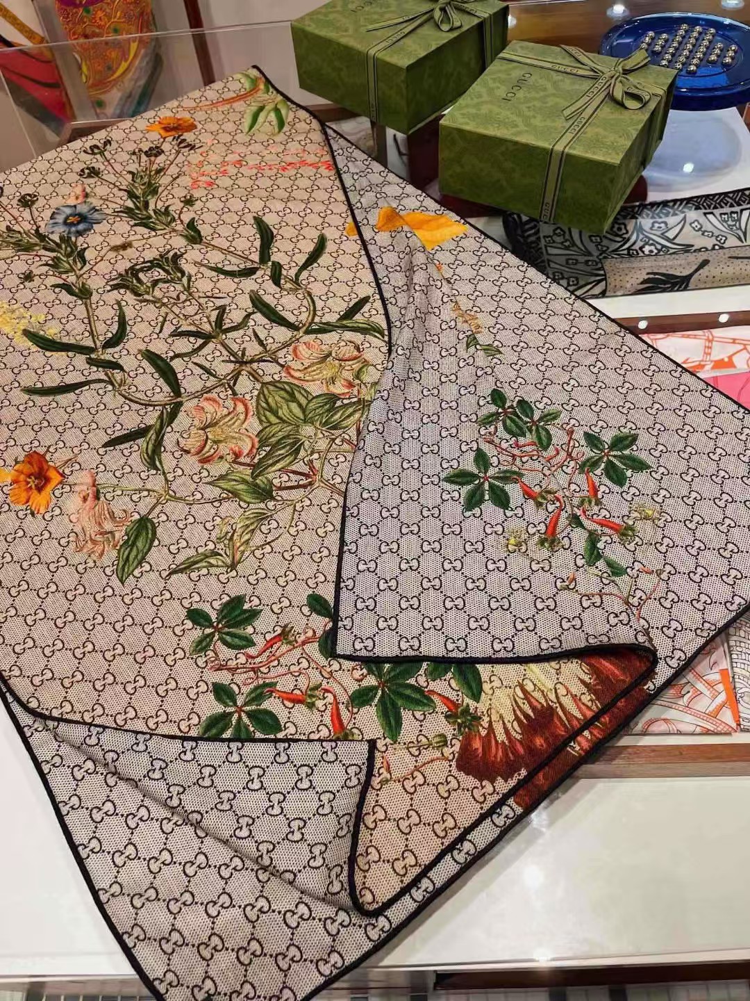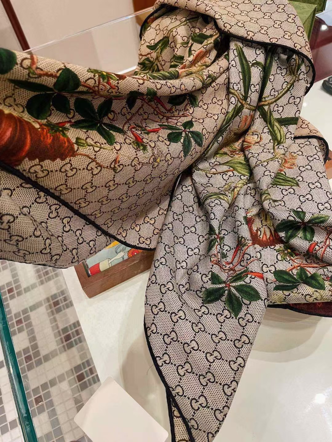 【介绍】 Gucci双面双色花卉羊绒围巾~超级抬气色!高级女人味!羊绒围巾也能这么美!!招牌的花卉花色搭配服饰很显品味!!Gucci招牌花卉元素和老花GG的新融合,奢华优雅感,薄薄的羊绒手感,双面双色的设计真的很赞!春夏搭配白衬衫更是又气质又时髦,秋冬搭配大衣超级显品味,柔软软糯顺滑!赋予了围巾非常容易造型,非常重磅奢华的设计,上身却别样衬得人高贵气质!简单的打底配此款围巾,简单的搭配却给人非常舒适有品味的大牌感…推荐!!