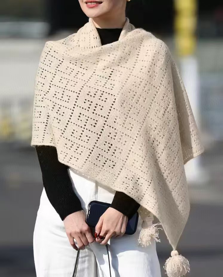 【介绍】 皮雅娜【LP针织镂空流苏披肩】LP羊绒世家,羊绒界的新贵,只做最好的皮雅娜,自己可以去看看哦,他家的价格估计会让你却步,太贵了,简直是贵族的价格。此款镂空针织毛球羊绒,具有超高羊绒品质才会被此品牌青睐‼这种羊绒精品围巾是市场上及其少见的,真是超级高端货‼只有这种大品牌才会拥有‼时尚装饰,环绕颈间大方得体。简单而不简陋,清淡而不失装饰。