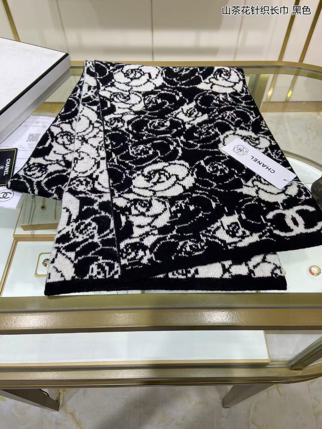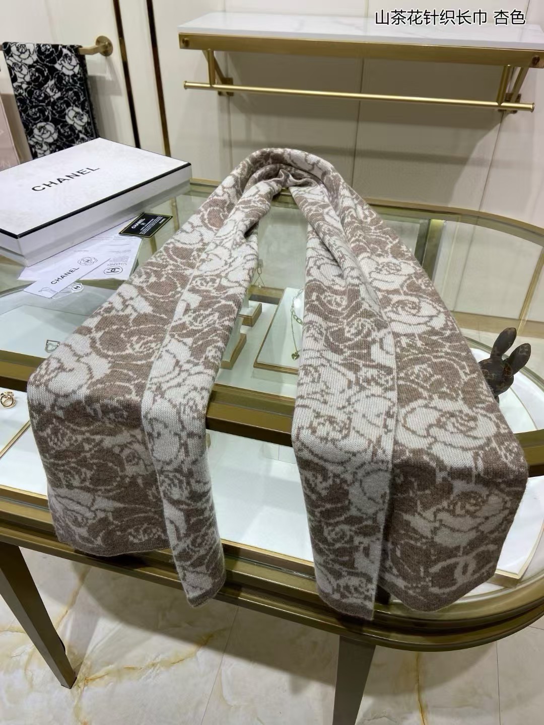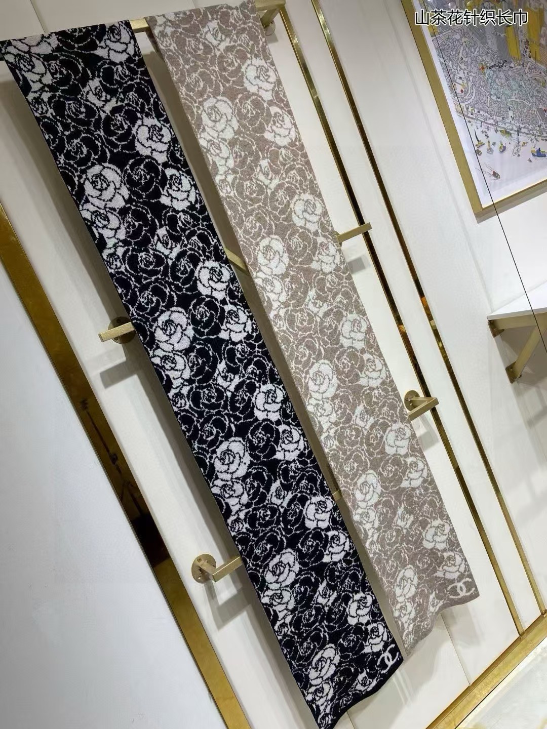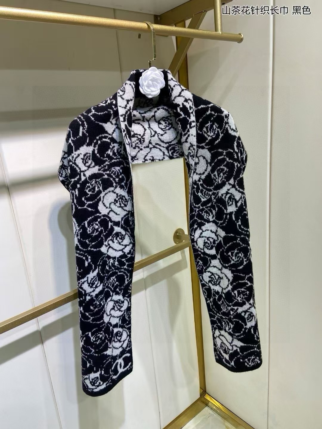 CHANEL 香奈儿 羊绒 山茶花针织长巾
