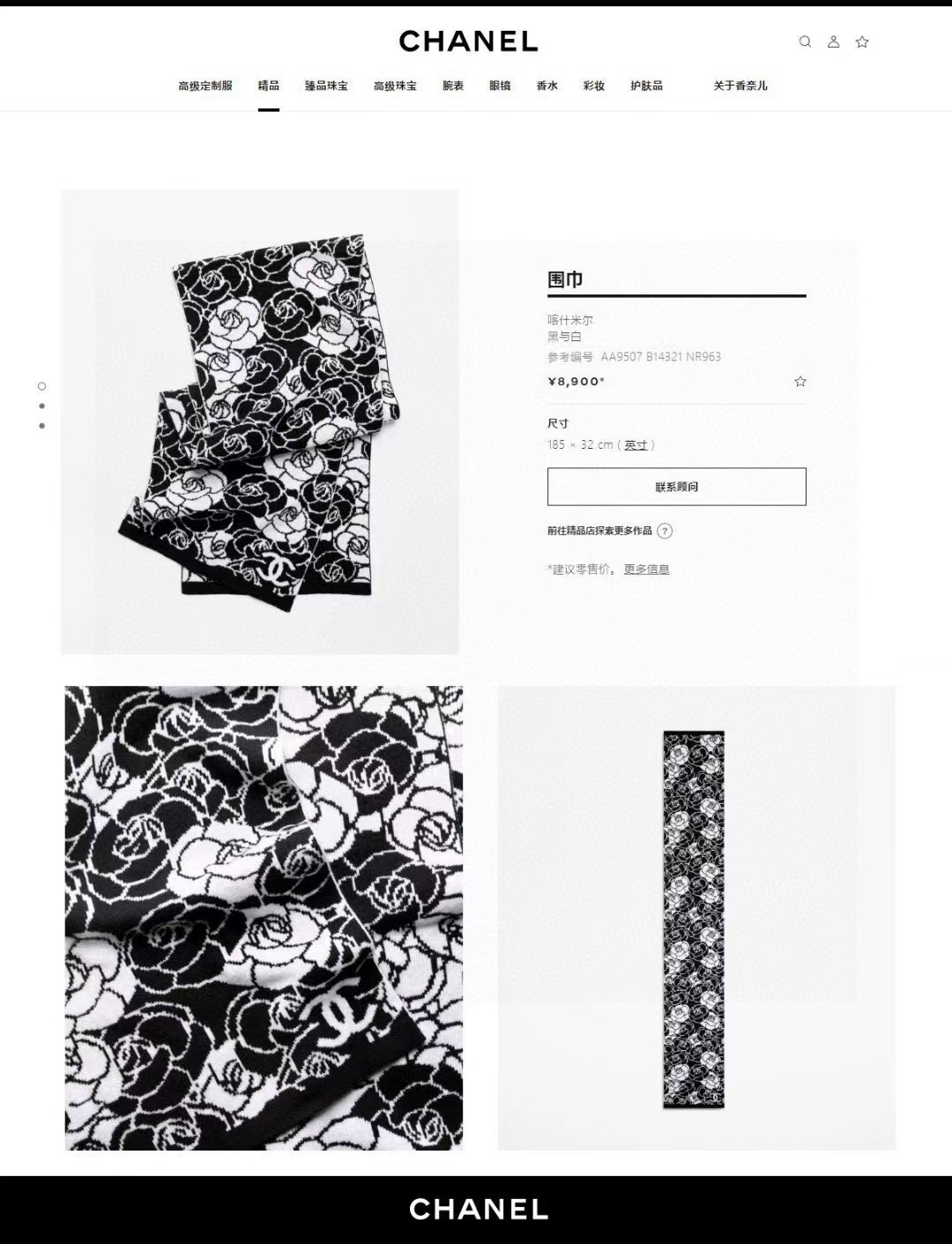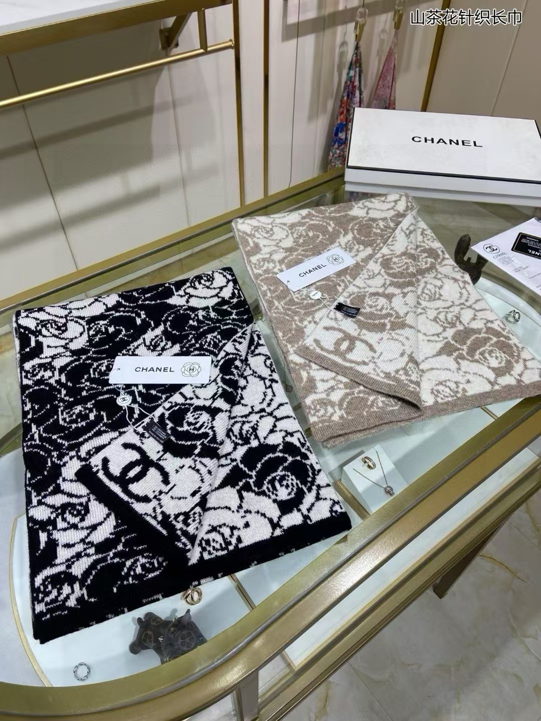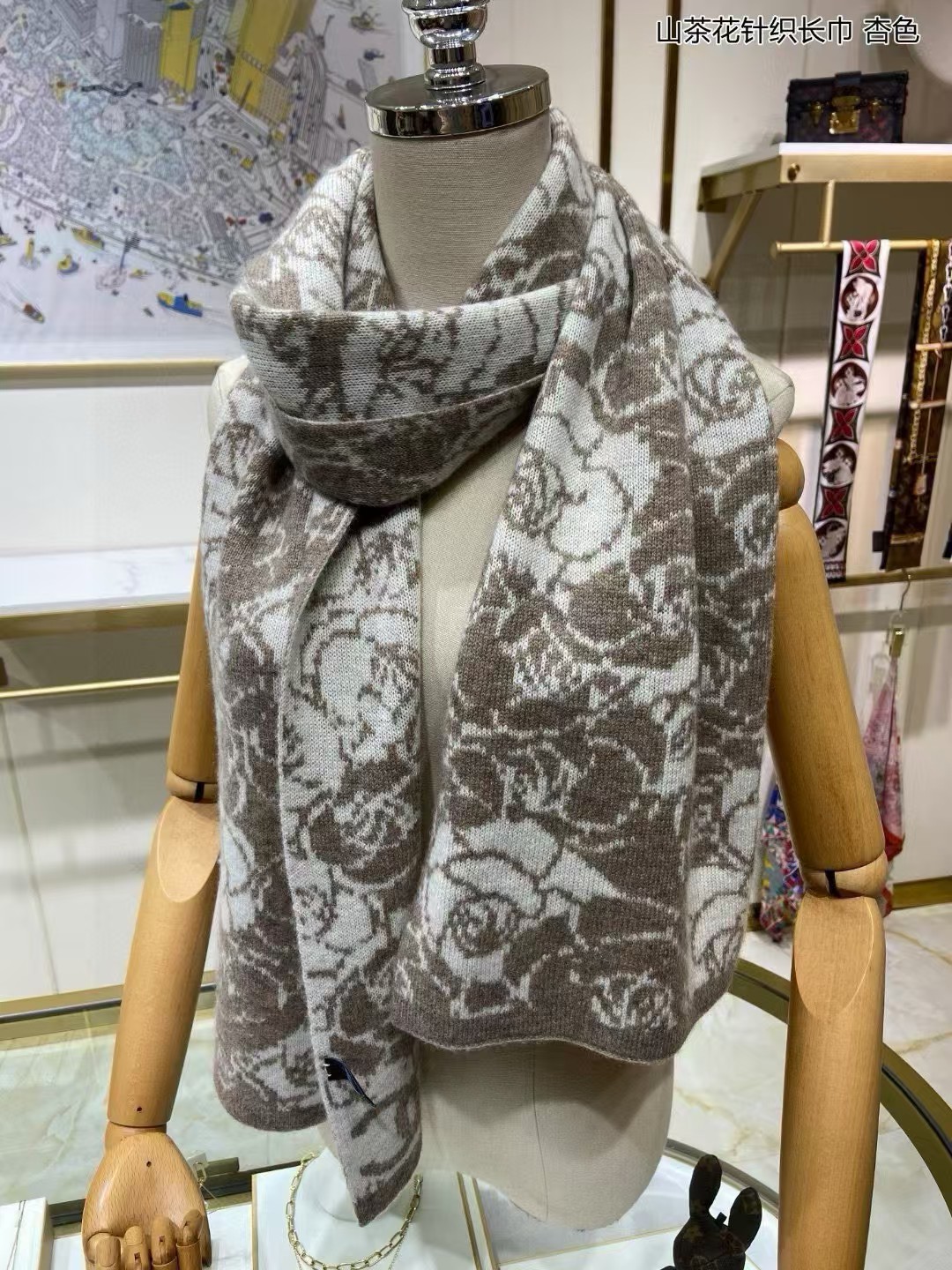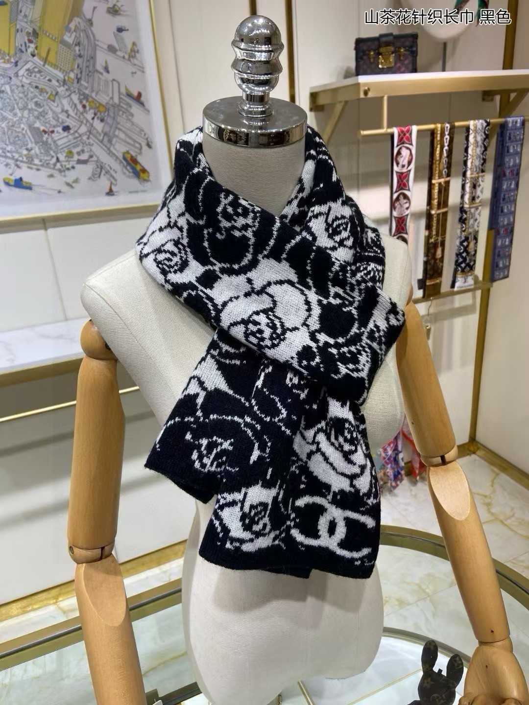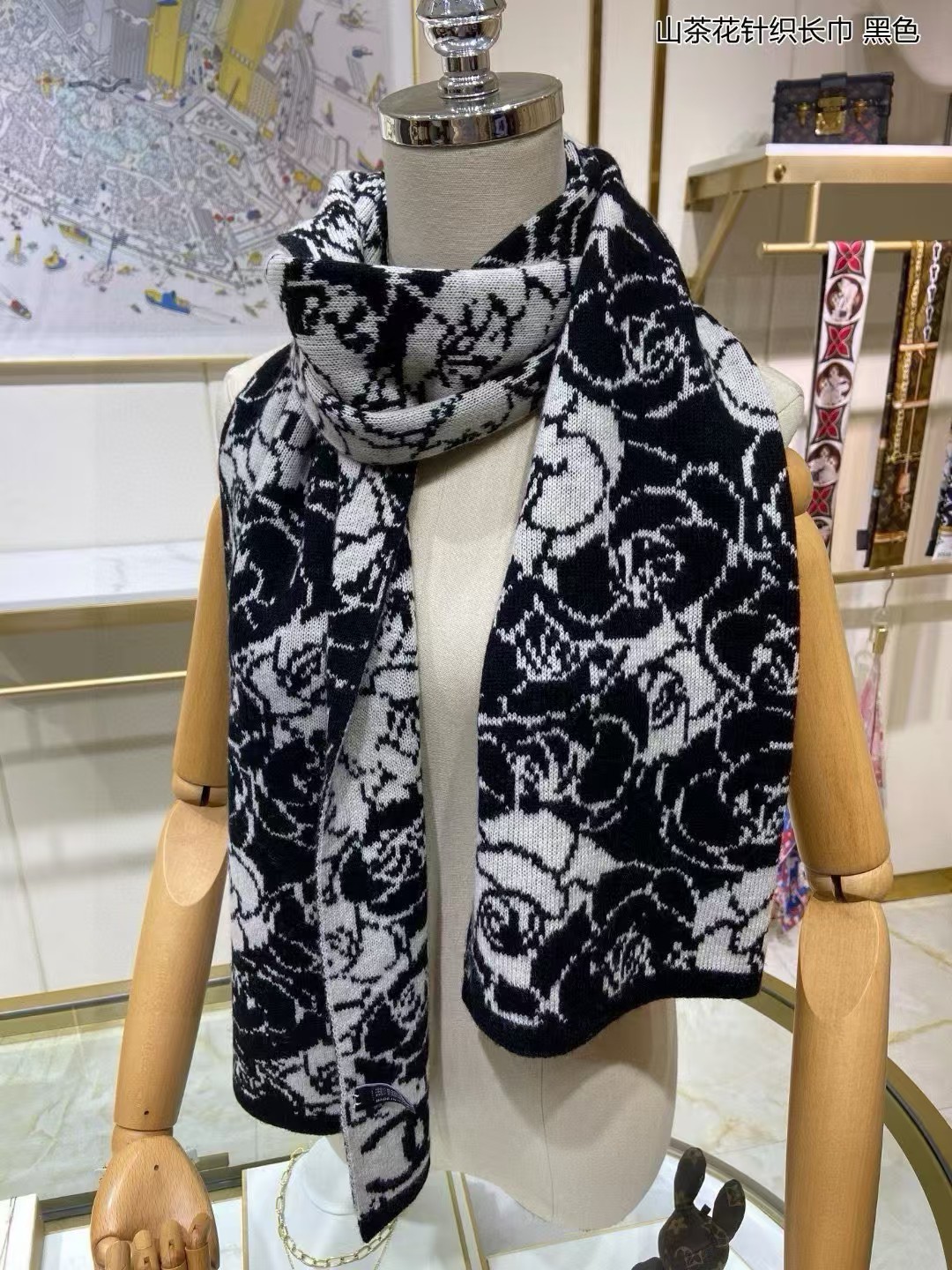 CHANEL 香奈儿 羊绒 山茶花针织长巾